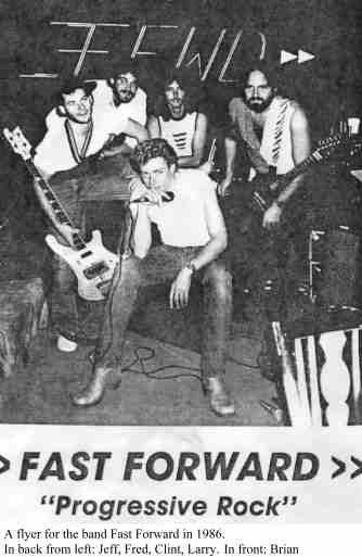 The next step was finding a drummer, which wasn't too difficult as Dad quickly recommended Clint Miller from his old Longmont band (Beaute Shiela), which had since completely dissolved. After an impressive audition, Clint was hired, and the band Fast Forward was now complete (click here to see the song list).