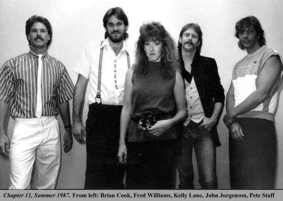 The start of 1988 brought another change to Chapter 11. In a somewhat bizarre bit of circumstances, Kelly, the lead female vocalist, decided to quit the band after a long dispute with the lead guitar player John's girlfriend, whom Kelly had ironically introduced to John several months earlier. The situation became too much of a distraction for Kelly, so she opted to walk away rather than to face continued problems.